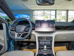 Ở nội thất, giống như các phiên bản chạy điện của BYD đã bán ở Việt Nam, hãng trang bị màn hình giải trí kích thước lớn (12,8-15,6 inch) dạng xoay giữa táp-lô. Đây là nơi tùy chỉnh hầu hết các chức năng của xe. Màn hình tốc độ dạng kỹ thuật số. Ghế chỉnh điện 6 hướng là tính năng tiêu chuẩn.